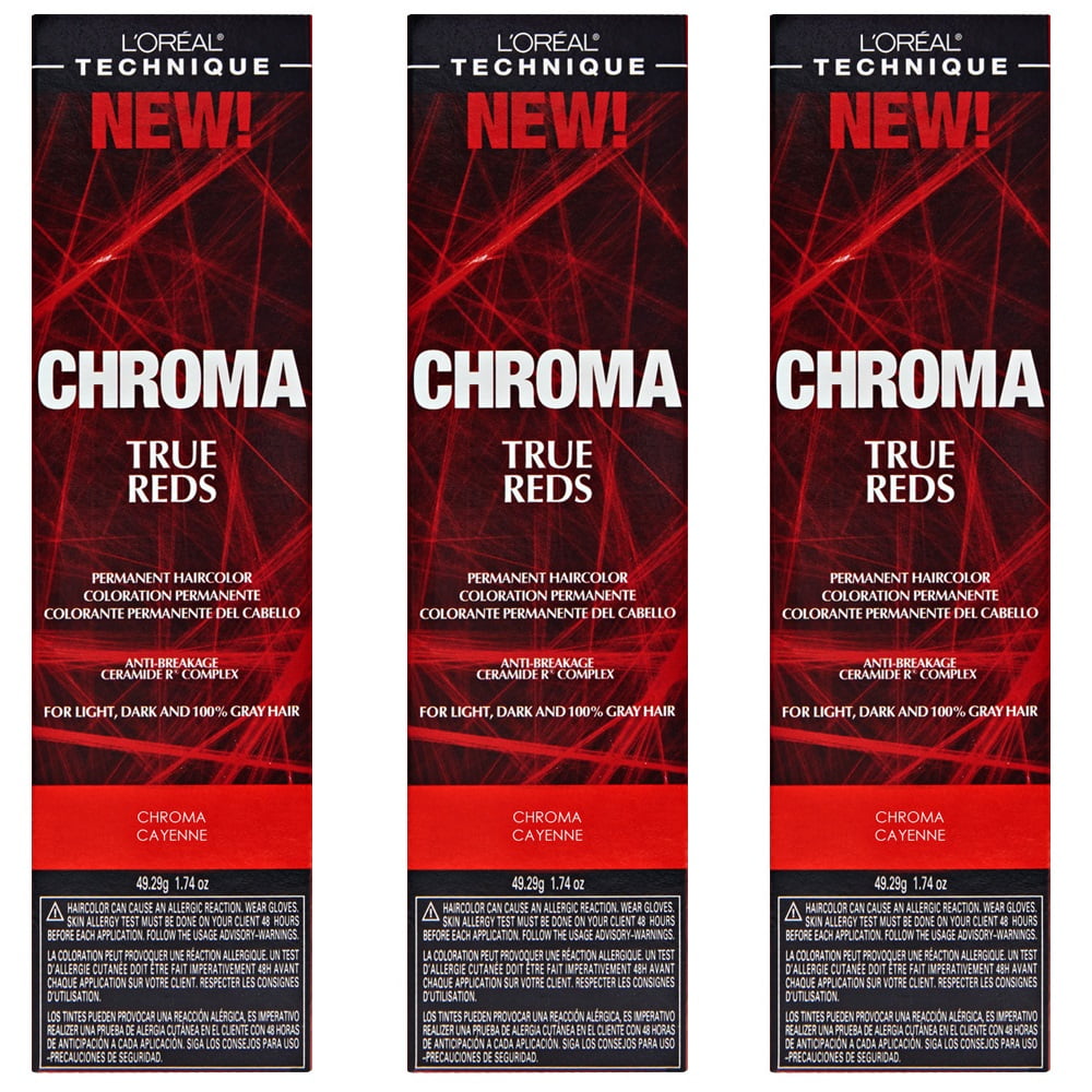 L'oreal technique chroma true reds collection utilizes a unique red dye technology for l'oreal technique that delivers key benefits to customers . Mix entire contents of chroma tube with 20, 30 or 40 volume oreor creme developer . Shop and save on hundreds of the best hair and beauty brands today! They are suitable for use on all bases of . High intensity true red color results that can be used on light, dark, and 100% gray hair.